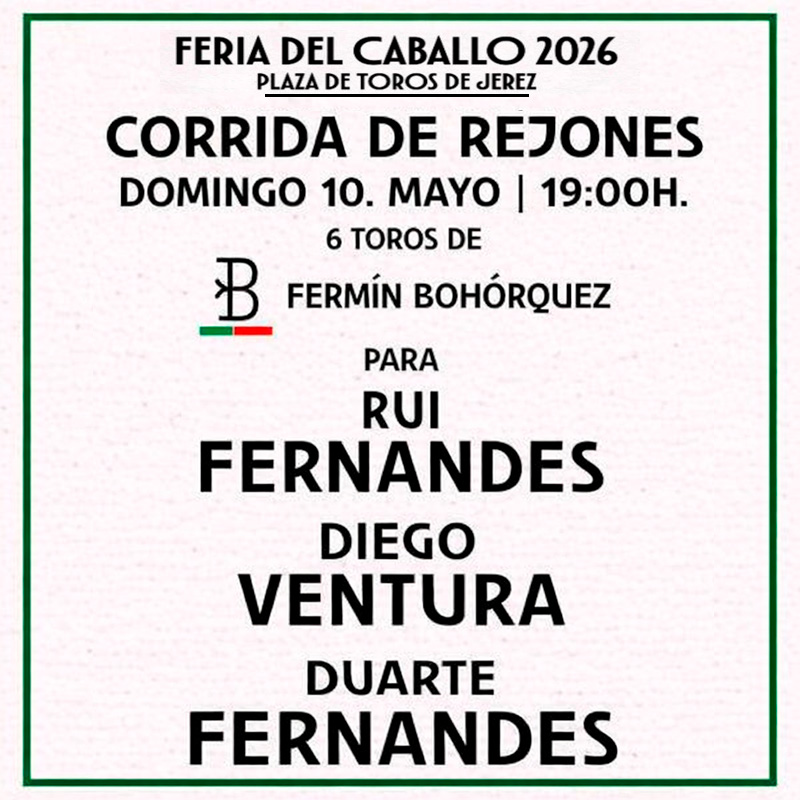 La Feria del Caballo es la fiesta más importante que se celebra en Jerez de la Frontera (Cádiz), la semana por la que los jerezanos esperan todo el año para engalanarse y disfrutar. Está declarada de Interés Turístico Internacional, y es que hasta aquí se desplaza gente de todo el mundo atraída por los caballos, el vino, el flamenco, la gastronomía y, cómo no, los toros. Comienza una semana después de la Feria de Abril (que a su vez depende de la Semana Santa), este año 2026 habrá espectáculos taurinos los días 10, 15 y 16 de mayo.